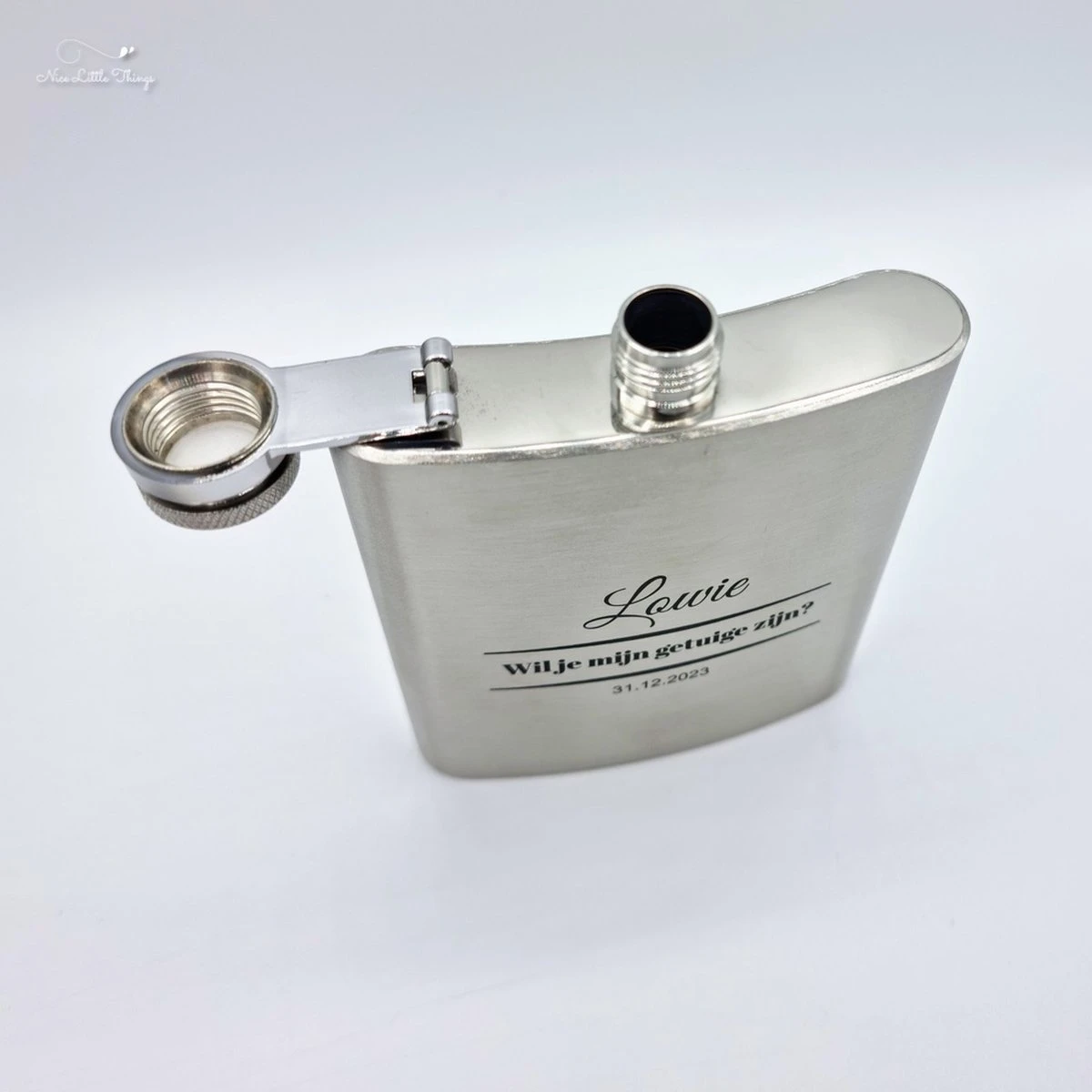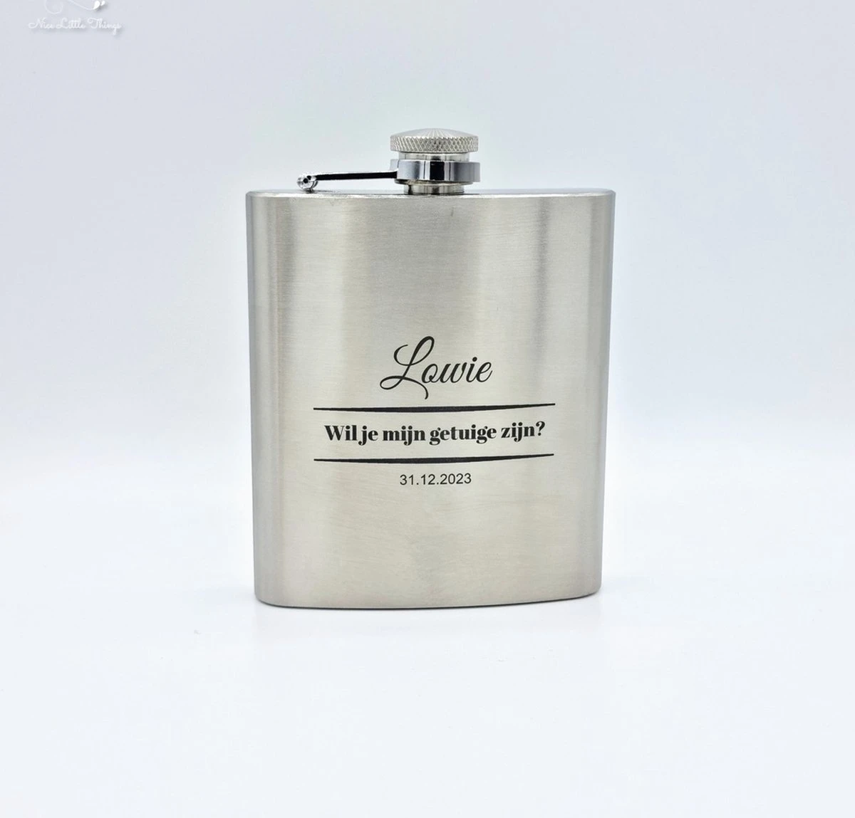 Cette flasque personnalisée est en acier inoxydable et a une contenance de 20cl.