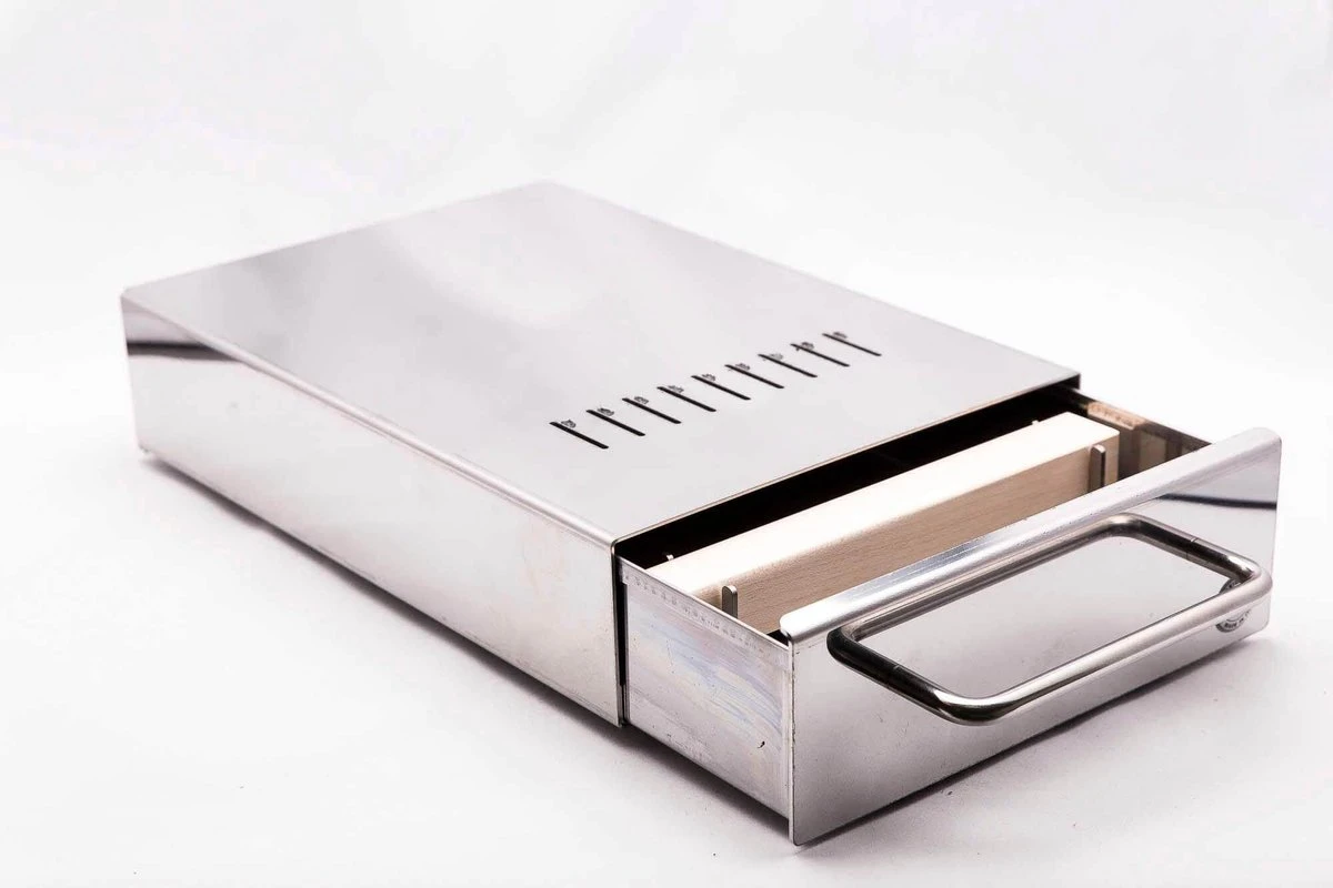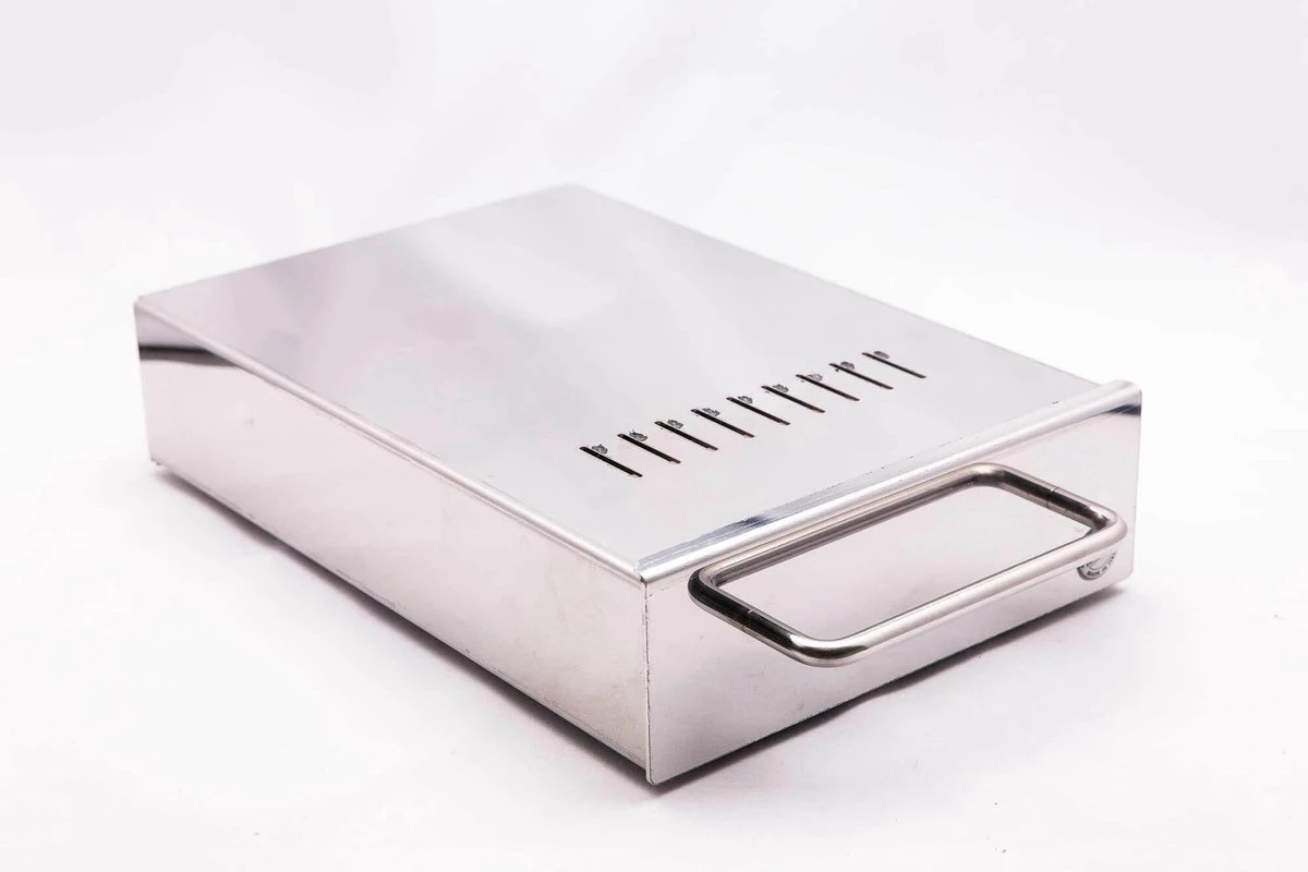 Plateau à fouetter de taille pratique à placer sous un moulin à café ou une (petite) machine à expresso. Avec des pieds en caoutchouc sur le fond pour maintenir le plateau d’éjection stable en place.
