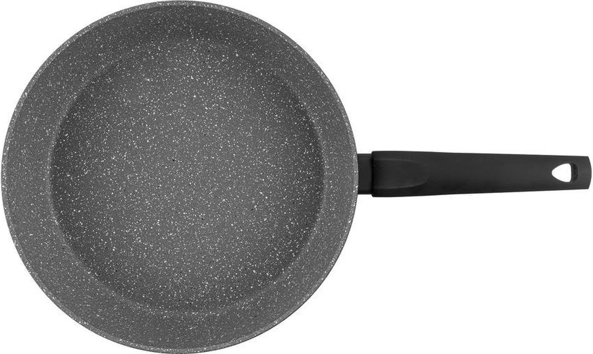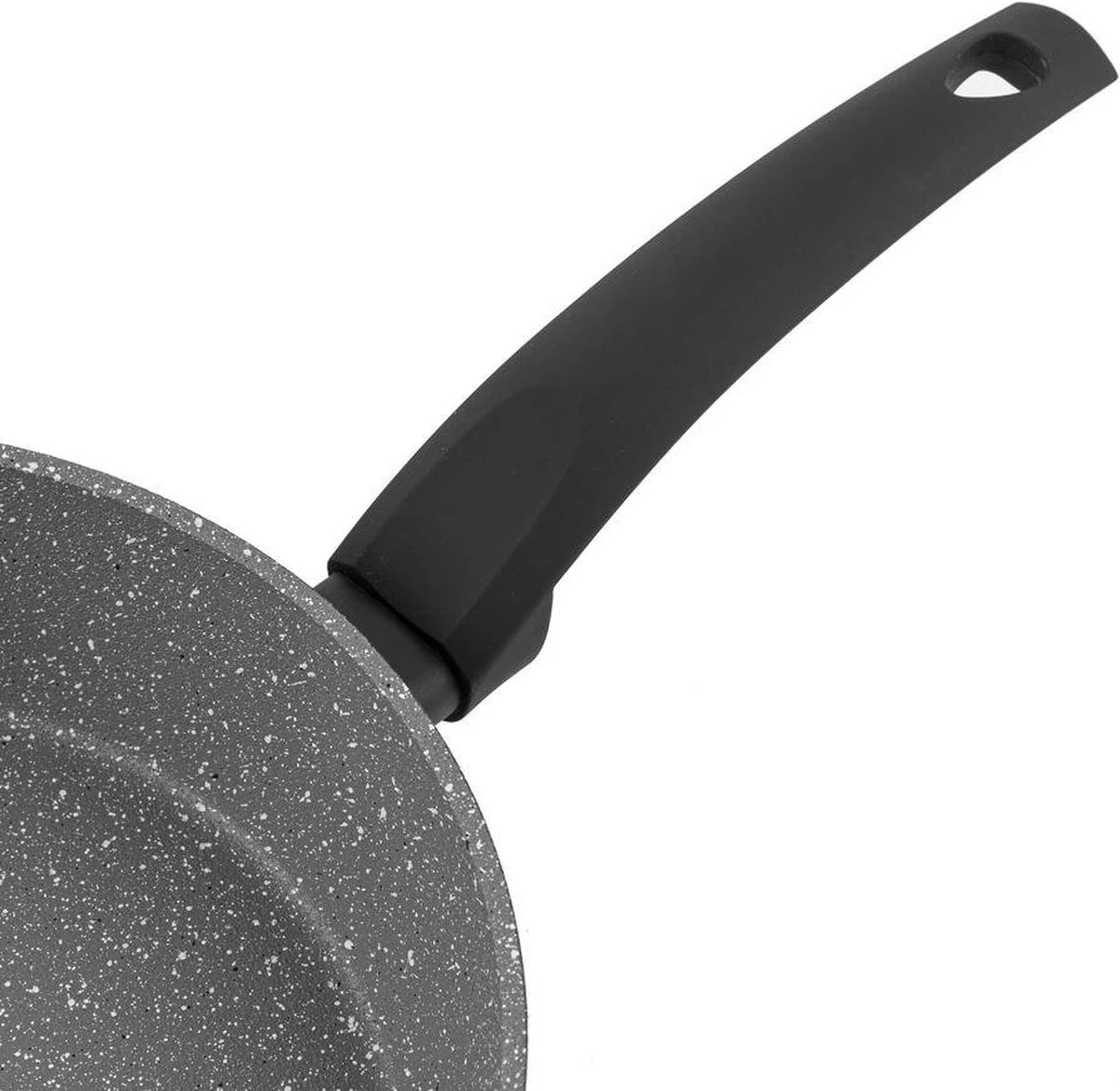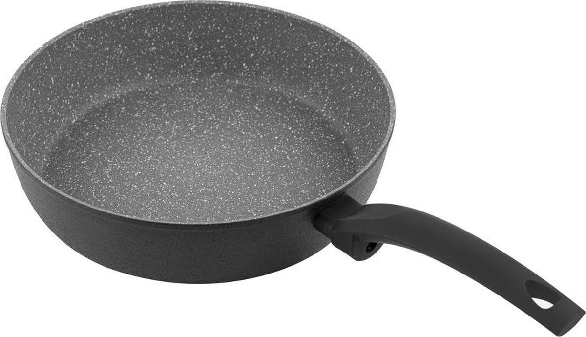 La poêle Salva a une couleur métallique noire à l’extérieur avec une poignée noire. L’intérieur est gris avec une structure pierreuse poreuse. En combinant ces 2 couleurs, il a un look unique et luxueux