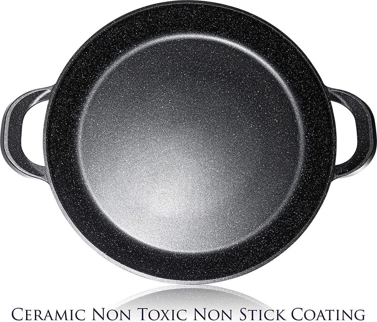 Poêle à paella CUILINA 40 cm pour la paella parfaite, en aluminium moulé sous pression robuste (léger), revêtement en céramique renforcé à l’intérieur qui ne s’enroulera ou ne cliquera jamais avec un revêtement antiadhésif qui garantit que les aliments ne collent pas et que peu ou pas de graisse nécessaire cuisiner avec.