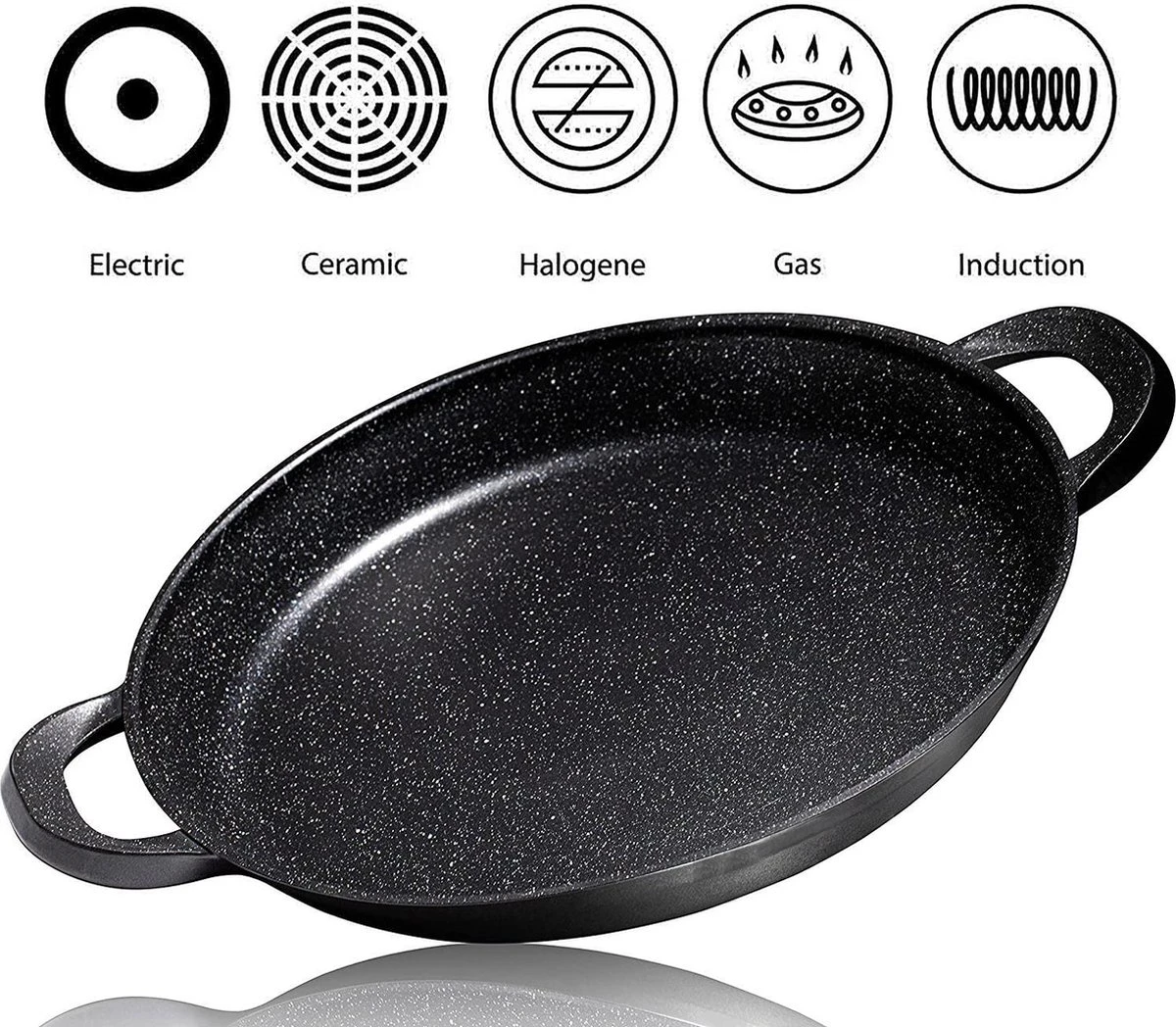 La poêle à paella CUILINA estconvient à toutes les sources de chaleur : Induction, gaz, électrique, feu ouvert, céramique, plaque de cuisson