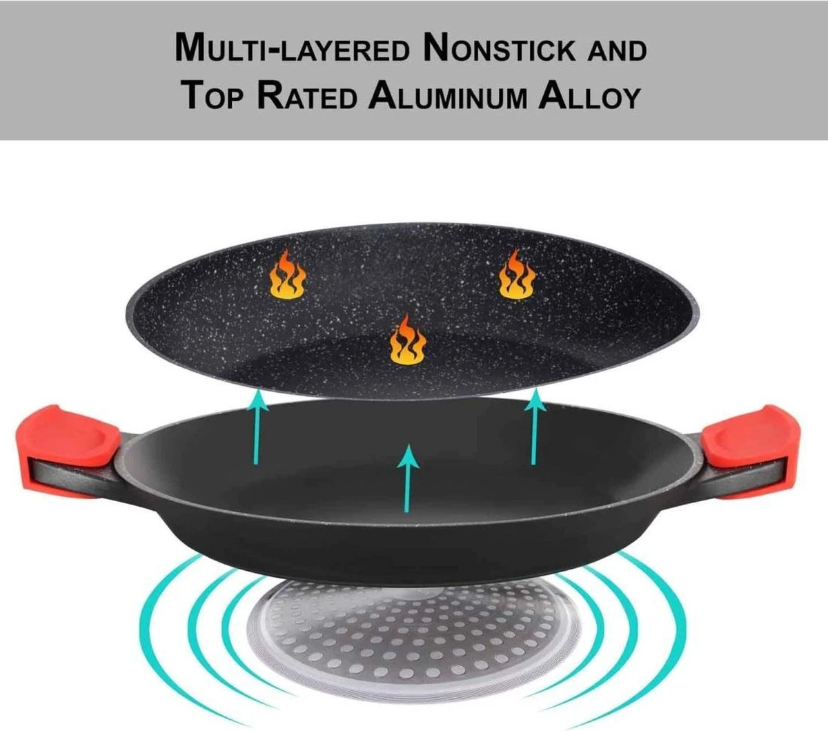 La poêle à paella CUILINA est une poêle polyvalente, peut également être utilisée pour les crêpes, les grillades, la cuisson des légumes et bien plus encore.