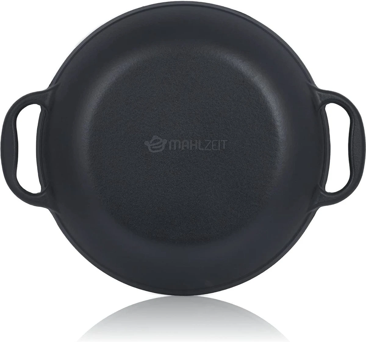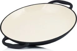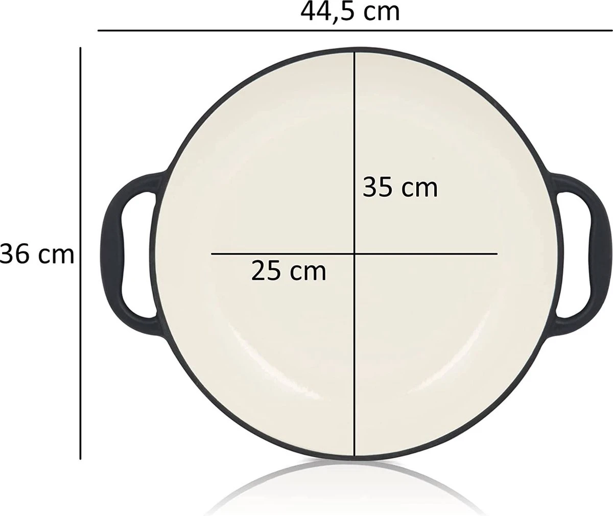 - Cuisine méditerranéenne : avec un diamètre de 35 cm, la poêle en fonte offre suffisamment d’espace pour une torréfaction suffisante. Le poids d’environ 3,9 kg assure un maintien sûr. La poêle émaillée est le complément idéal à vos appareils de cuisine.