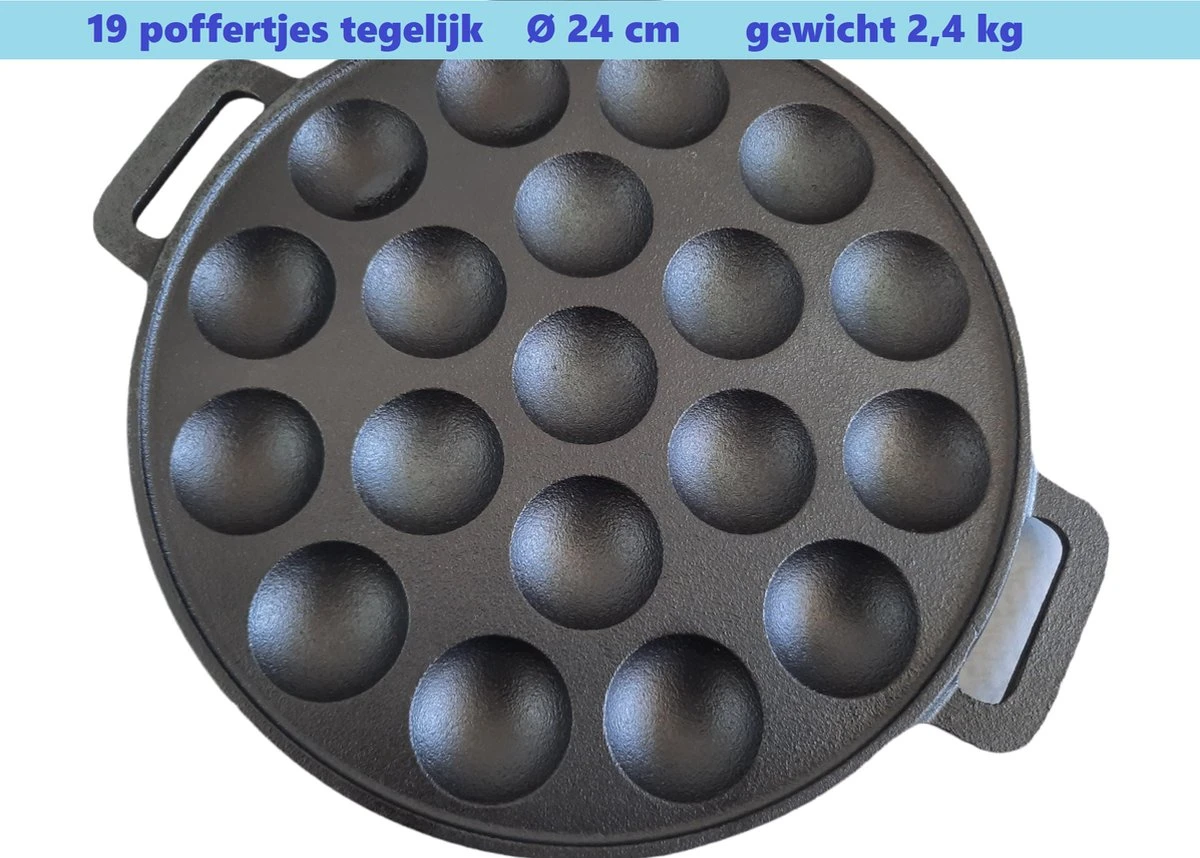 Avec cette poêle à poffertjes, vous pouvez cuire 19 des poffertjes les plus savoureux en même temps pour une fête d’enfants, une party ou juste pour un moment. Adapté à toute source de chaleur, oui, il peut même être utilisé sur le barbecue !
