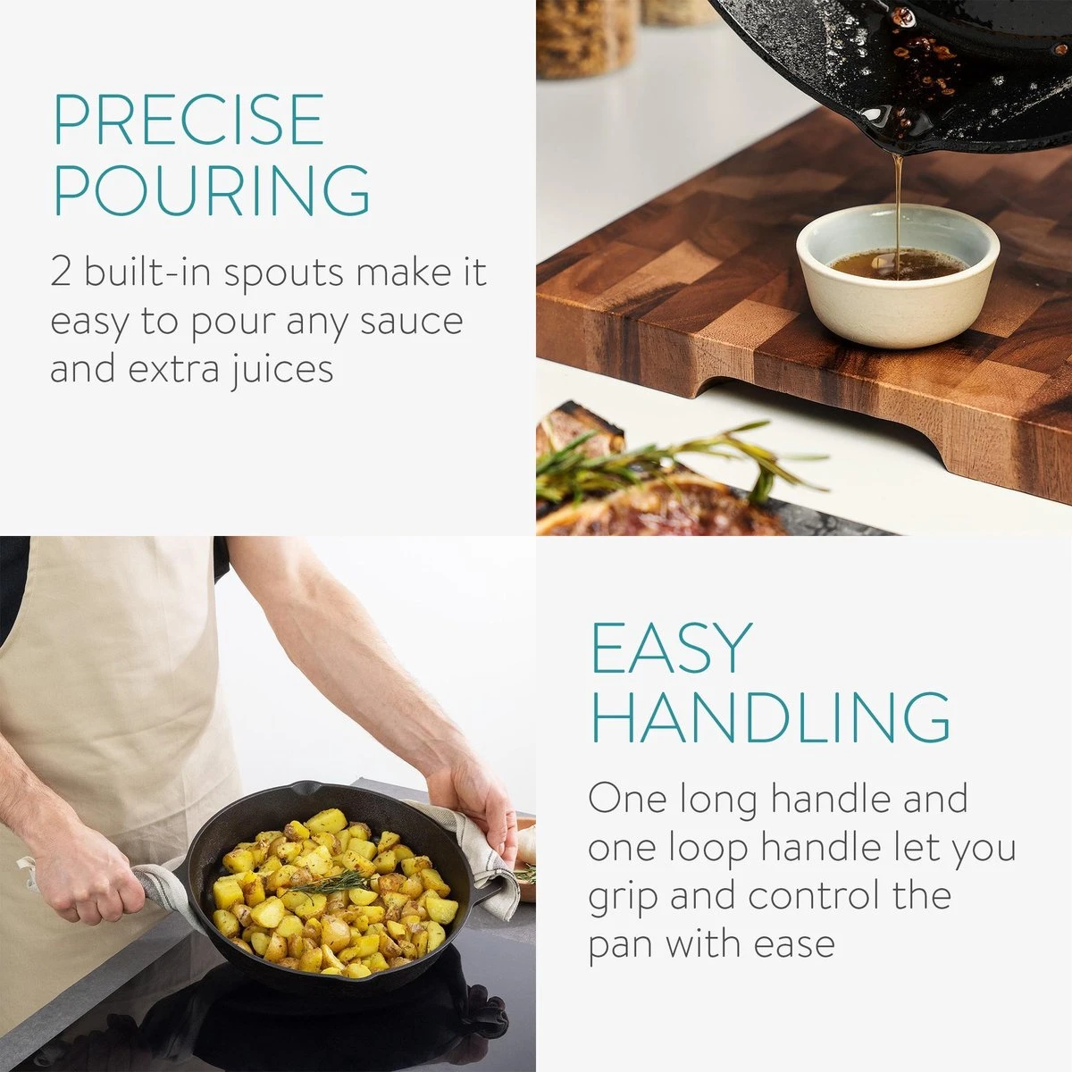- POÊLE POLYVALENTE : La Navaris en fonte Navaris est incroyablement polyvalente. Rôtir de la viande, cuire des crêpes, préparer un ragoût ou faire de la pizza – tout est possible dans cette poêle en fonte.