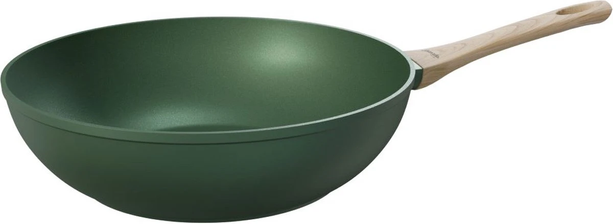 Vous cherchez une poêle wok écologique ? Alors la poêle wok verte de Forest est voor jou! La poêle durable est fabriquée à partir de matériaux de haute qualité et possède un fond sans PFOA, ce qui assure une répartition optimale de la chaleur et une longue durée de vie. Votre poêle orientale est également adaptée à tous les feux : induction, vitrocéramique, gaz et électrique. La poêle a un manche en bois, elle ne chauffe donc pas et a un diamètre de 28 cm. Il est préférable de laver la poêle wok à la main, afin qu’elle conserve sa longue durée de vie. La poêle est dotée d’un revêtement antiadhésif, ce qui facilite le nettoyage et la cuisson !