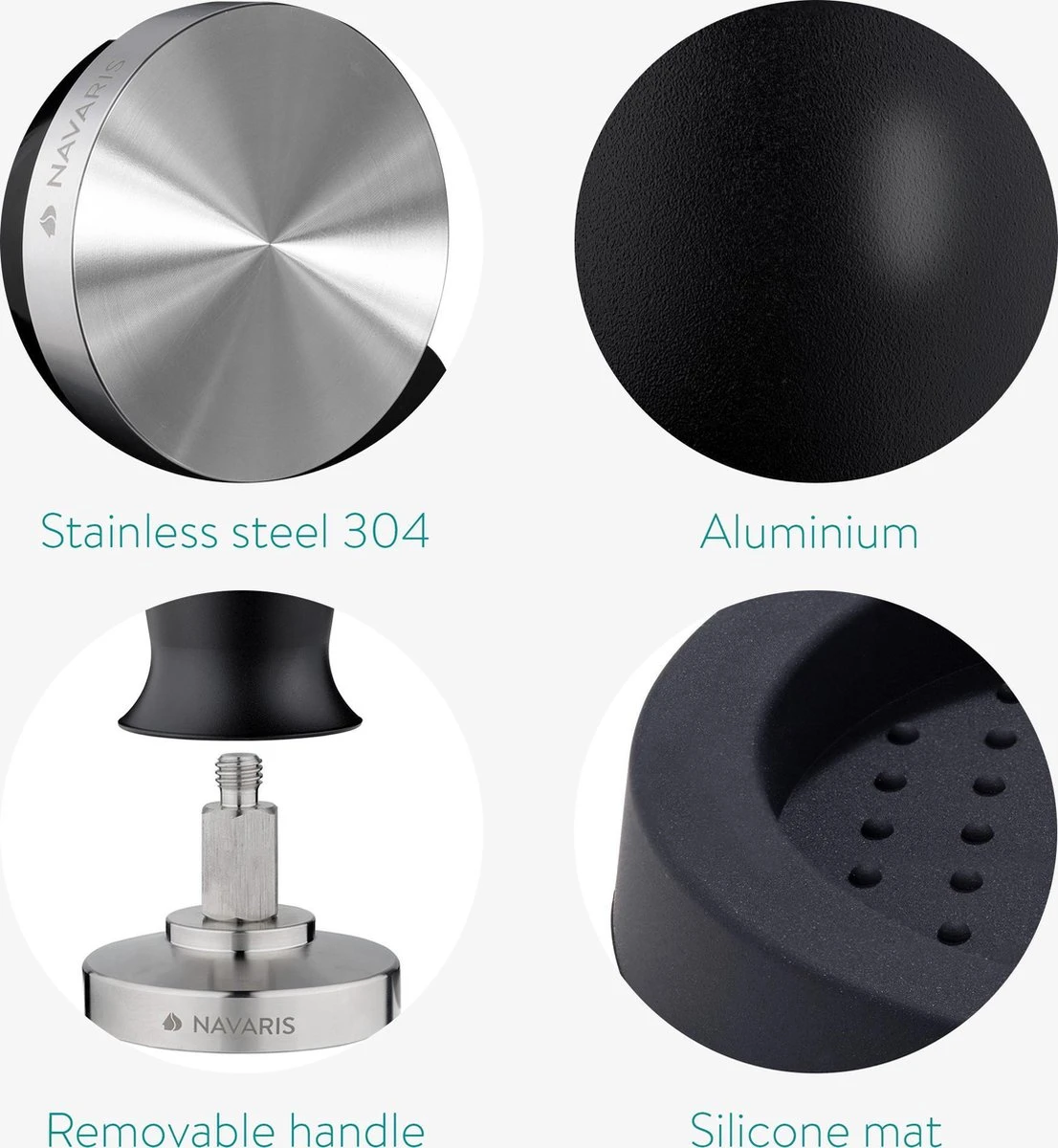 - DÉTAILS : Vous recevrez un presse-café (diamètre 51 mm) avec poignée en aluminium et un tapis en silicone pour la protection.