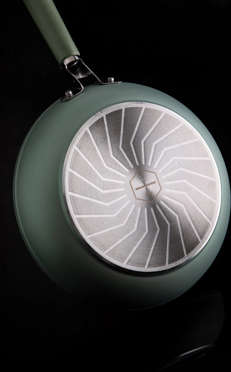 Qu’est-ce qui rend le revêtement antiadhésif de cette poêle si spécial ? Ecoshield est un nouveau type de revêtement qui protège à la fois la santé humaine et l’environnement. Entièrement sans PTFE, PFOA et sans nickel. Le revêtement solide est résistant aux rayures et à l’usure. Fabriquées à partir d’aluminium hautement allié recyclable, nos poêles à frire antiadhésives durent beaucoup plus longtemps que les ustensiles de cuisine antiadhésifs traditionnels. Les poêles antiadhésives Primecook sont 100% italiennes.