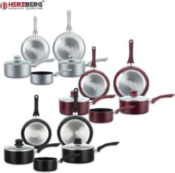 Edënbërg Red Line – Batterie De Cuisine De Luxe De 12 Pièces En Aluminium Forgé – Rouge / Métallisé