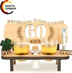 Brynnberg Schnapsbank Mit Jahreszahl - Holz Lorbeerkranz Mit Zahl Engraving - Gift Zum 60 Hochzeitstag Couple Anniversary - Geburtstag Und Pärchen Gift Idea - Schnapsgläser Latte Mit 2 Gläsern