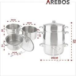 AREBOS Presse Fruits Extracteur Vapeur Presse-agrumes Cuiseur Vapeur Extracteur De Jus Ø 26cm