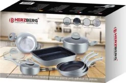 Ensemble De Casseroles En Marbre Herzberg En Aluminium 10 Pièces – Convient à L’induction – Argent