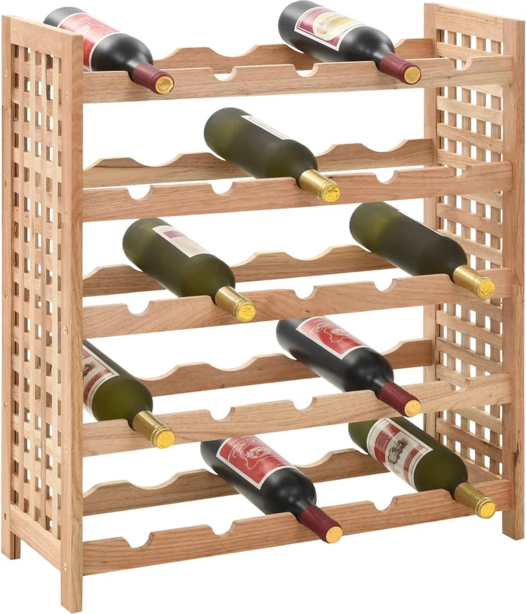 Fabriqué à partir de bois de noyer massif, ce casier à vin à 5 niveaux apportera une touche de style naturel à votre maison et fournira une solution de stockage idéale pour vos bouteilles de vin.