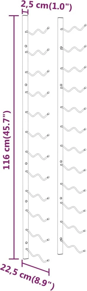 - Dimensions : 22,5 x 2,5 x 116 cm (L x l x H)