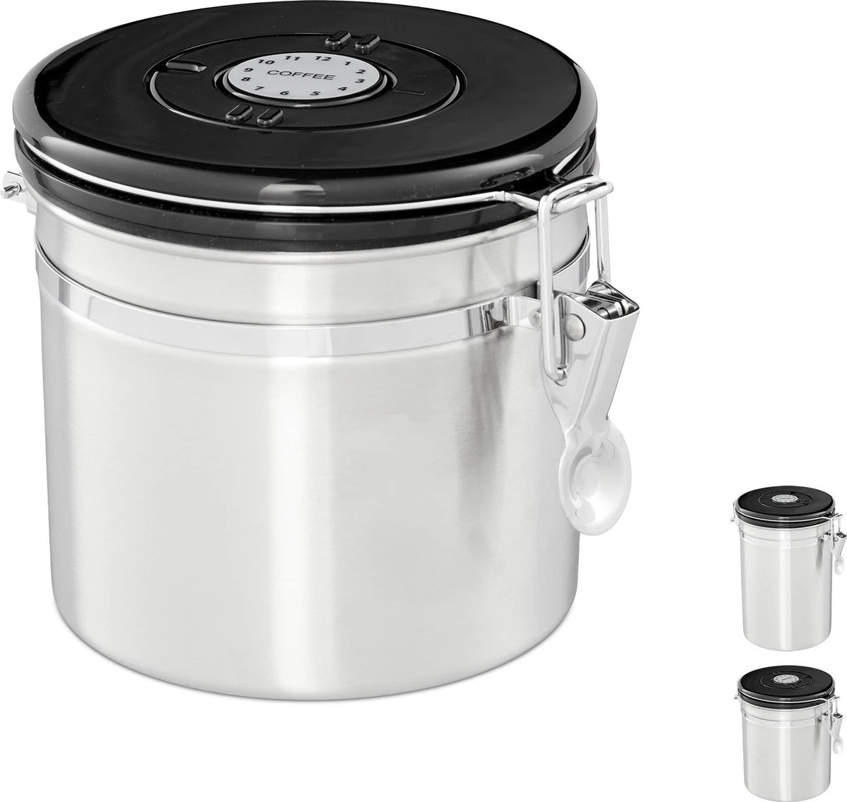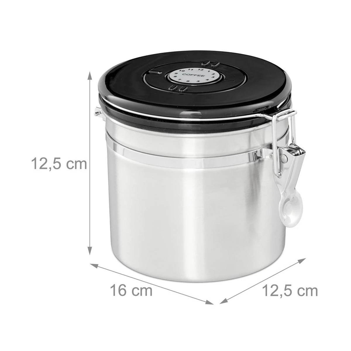 Les amateurs de café savent à quel point il est important de garder les grains de café ou le café moulu hermétiques afin que le goût ne soit pas immédiatement perdu. Le couvercle de cette boîte à café se ferme très précisément et hermétiquement. Cela vous permet de déguster votre boisson chaude préférée tous les jours comme si les grains de café étaient fraîchement moulus. L’aspect spécial de l’élégante boîte à café en acier inoxydable est que vous pouvez régler le jour et le mois de la date d’expiration sur le couvercle avec l’engrenage. Boîte à café en détail – Choix de différentes tailles – Matériau: acier inoxydable, plastique – Couleur: argent, noir Petite boîte de rangement – Dimensions H x L x P: environ 12,5 x 12,5 x 16 cm – Volume: environ 900 ml – Poids: environ 370 g Boîte de stockage moyenne – Dimensions H x L x P: environ 15,5 x 12,5 x 16 cm – Volume environ 1300 ml – Poids: environ 410 g Grande boîte de stockage – Dimensions H x L x P : env.18,5 x 12,5 x 16 cm – Volume env.1910 ml – Poids: env.460 g Boîte hermétique pour café, etc. – Conservez le café, la farine, les biscuits ou le thé au frais dans une boîte de rangement – Fermeture à clip simple et pratique – Préserver l’arôme par couvercle – Fixer la date de péremption – Design intemporel et élégant en acier inoxydable mat – Nettoyage rapide à la main Contenu de la livraison – 1x Boîte à café de la taille de votre choix – La décoration n’est pas incluse dans la livraison