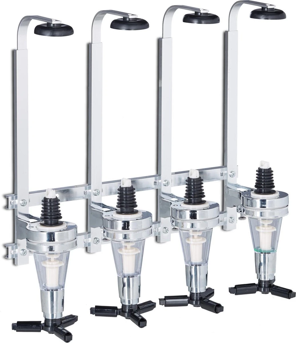 Avec ce majordome pour 4 bouteilles, votre bar à domicile est complet et vous créez une ambiance parfaite lors de la prochaine fête. Au total, 4 bouteilles peuvent être suspendues avec un volume de 0,7 litre. Avec ce majordome mural, vous pouvez désormais facilement mélanger et prendre une photo. Porte-bouteille pour le mur en détail • Dimensions H x L x P: environ 36 x 35,5 x 11 cm • Pour bouteilles de 0,7 litre • Dosage: environ 30 ml • Matériel: aluminium, plastique, caoutchouc • Poids: environ 0,7 kg Distributeur de boissons pour le mur • Parfait pour le bar à la maison • Accessoire pour boire un verre • Présentez magnifiquement les bouteilles • Idéal pour les grands groupes • Mélanger des cocktails • 1 porte-bouteille mural • Matériel de montage • Manuel d’utilisation • La décoration n’est pas comprise dans la livraison.