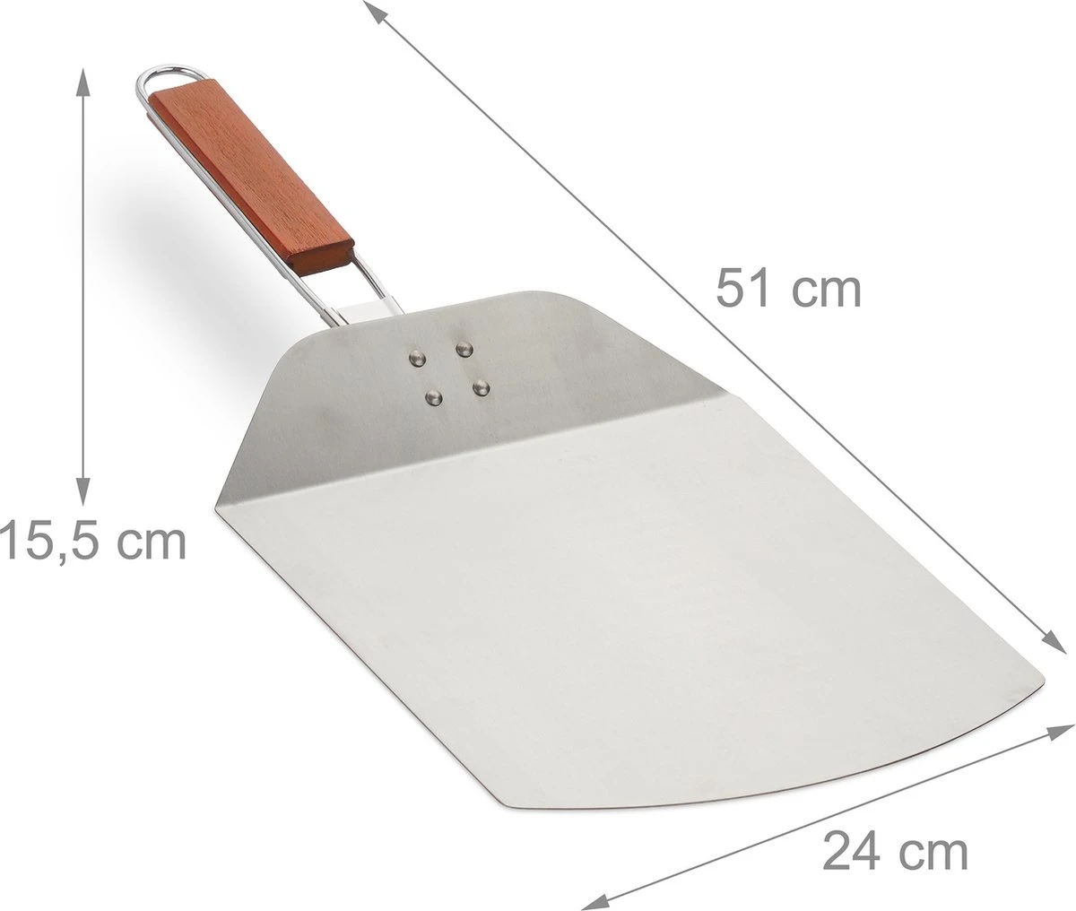 Avec cette pelle à pizza, vous glissez votre pizza dans le four comme un vrai pizzaiolo. Parce que la pelle est large, elle reste en place et ne glisse pas. De plus, la spatule est très fine, vous pouvez donc facilement glisser la pizza dessus. Non seulement lorsqu’il est prêt, mais aussi avant qu’il ne soit cuit. La pelle a une poignée pratique que vous pouvez plier lorsque vous souhaitez la ranger. Grâce à la longue poignée, vous pouvez garder une distance de sécurité avec le four lorsque vous sortez la pizza chaude.