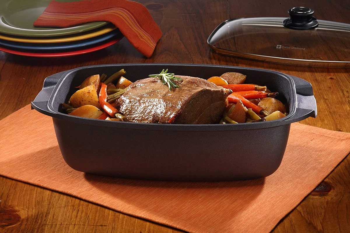 L’ensemble peut être utilisé comme rôtissoire pour garder votre viande humide, ou seul pour plus de flexibilité de cuisson.