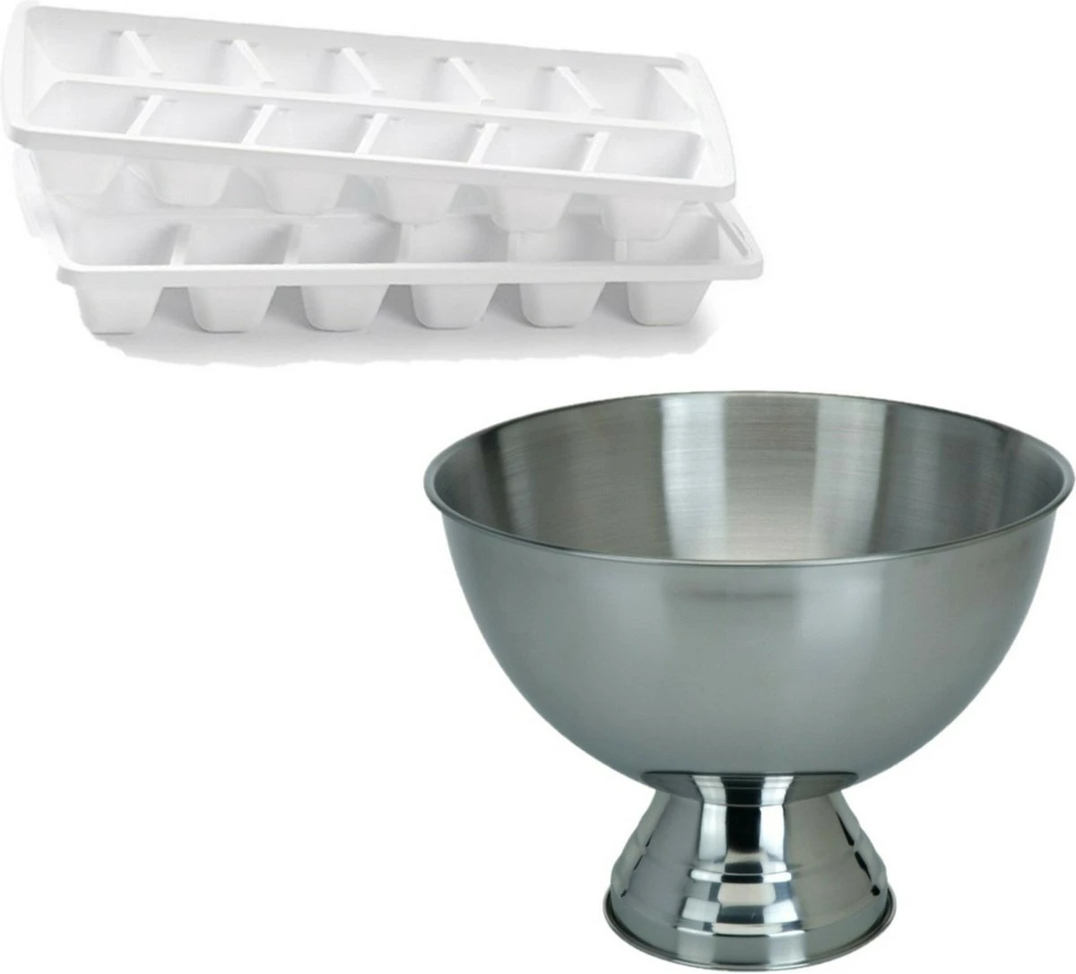 Seau à champagne/bol sur pied en acier inoxydable avec 4x morceaux de moules à glaçons. Utilisez ce magnifique seau à champagne en métal lors d’un apéritif ou d’une soirée, idéal pour conserver au frais les délicieux vins. Y compris 4x morceaux de moules à glaçons blancs. Taille seau à champagne : pied 19 cm et diamètre 40 cm. Dimensions par bac à glaçons : 29 x 9,5 x 3,5 cm. Matériau du refroidisseur : acier inoxydable. Matériau du glaçon : plastique.