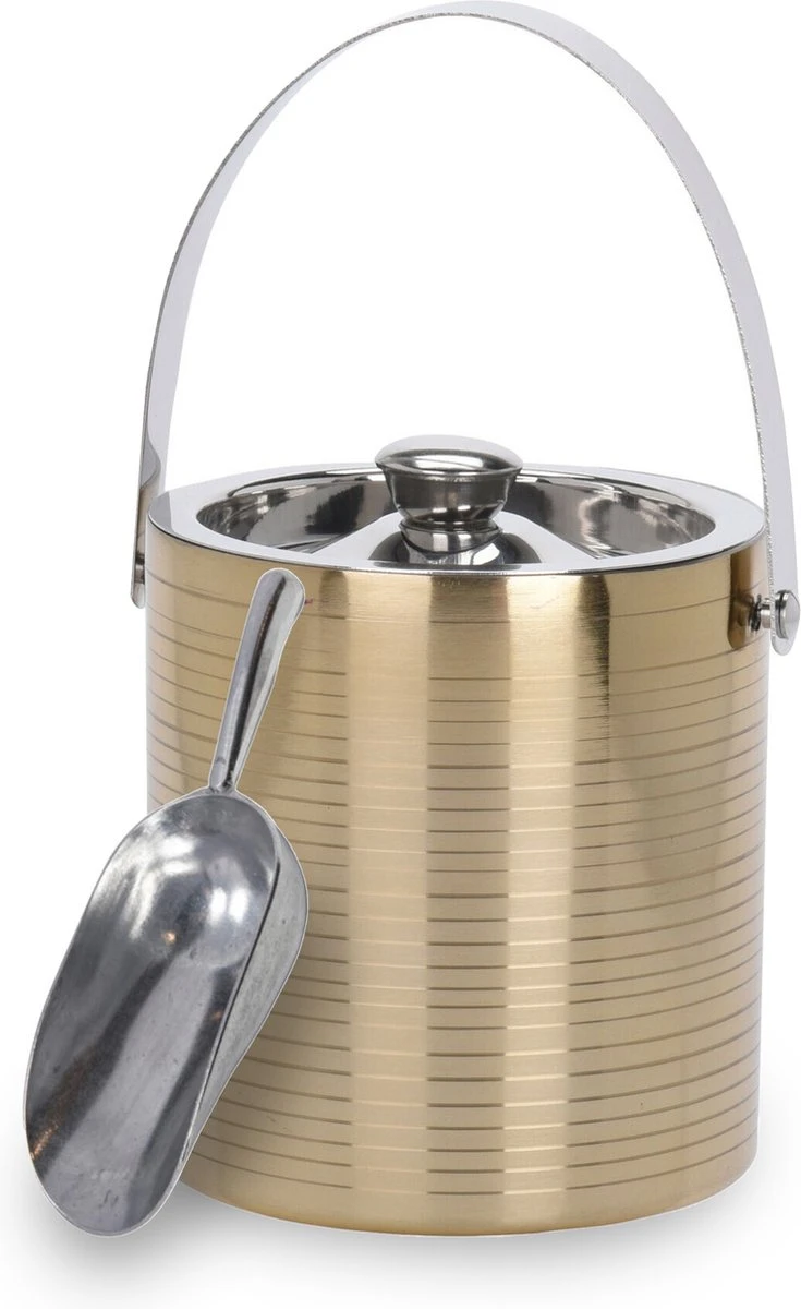 - 1x Seau à glace avec couvercle – doré – acier inoxydable – D15 x H16 cm