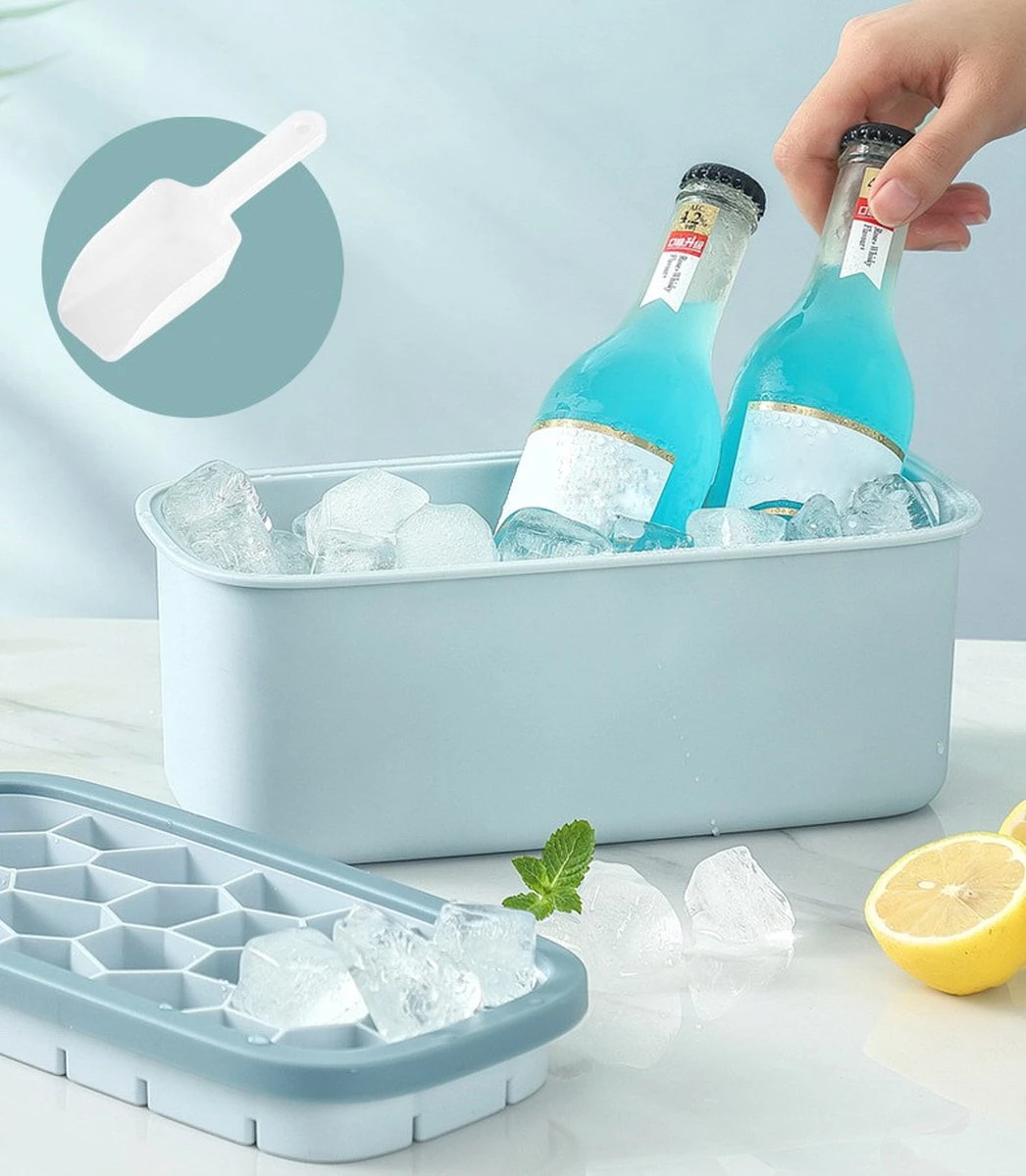 Cette glacière a une capacité de 1800 ml, vous avez donc toujours suffisamment de glaçons à disposition. En plus de fabriquer des glaçons, cette glacière peut également être utilisée comme refroidisseur de bouteilles, vous ferez donc d’une pierre deux coups ! La boîte est livrée avec une cuillère gratuite avec laquelle vous pouvez facilement retirer les glaçons du récipient et les verser dans votre verre