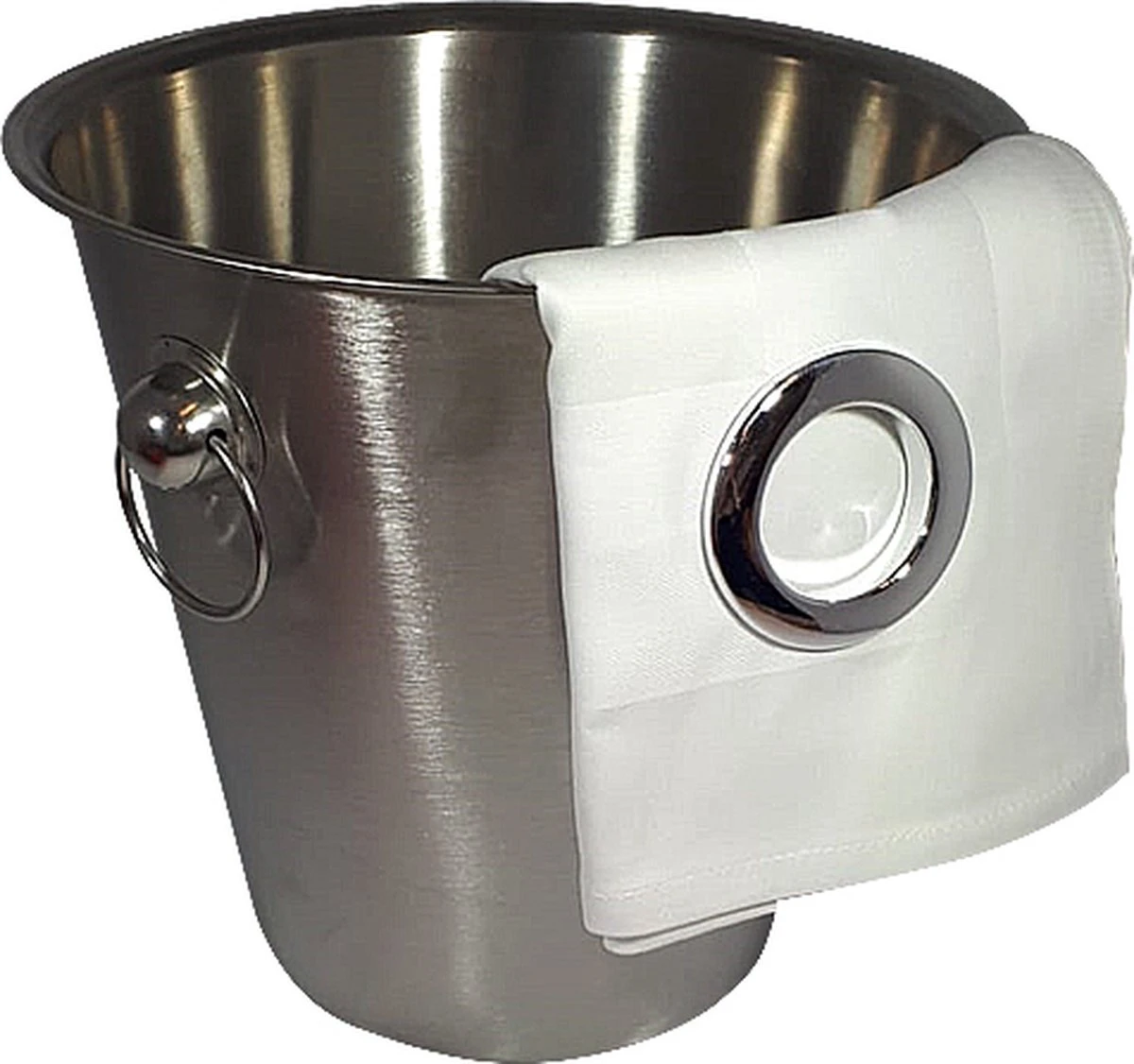 Les serviettes refroidisseur à vinServet garantissent que le vin ou le champagne peut être servi sans problème de manière chic. Non seulement c’est parfait pour les établissements de restauration tels que les restaurants, mais aussi à la maison, vous pouvez servir vos boissons préférées bien au frais avec nos serviettes. En utilisant des matériaux de la plus haute qualité, vous êtes assuré que la serviette pour refroidisseur de vin durera longtemps. La serviette est bien entendu fournie avec l’anneau à déclic pour faciliter l’accrochage de la serviette autour du goulot de votre biberon.