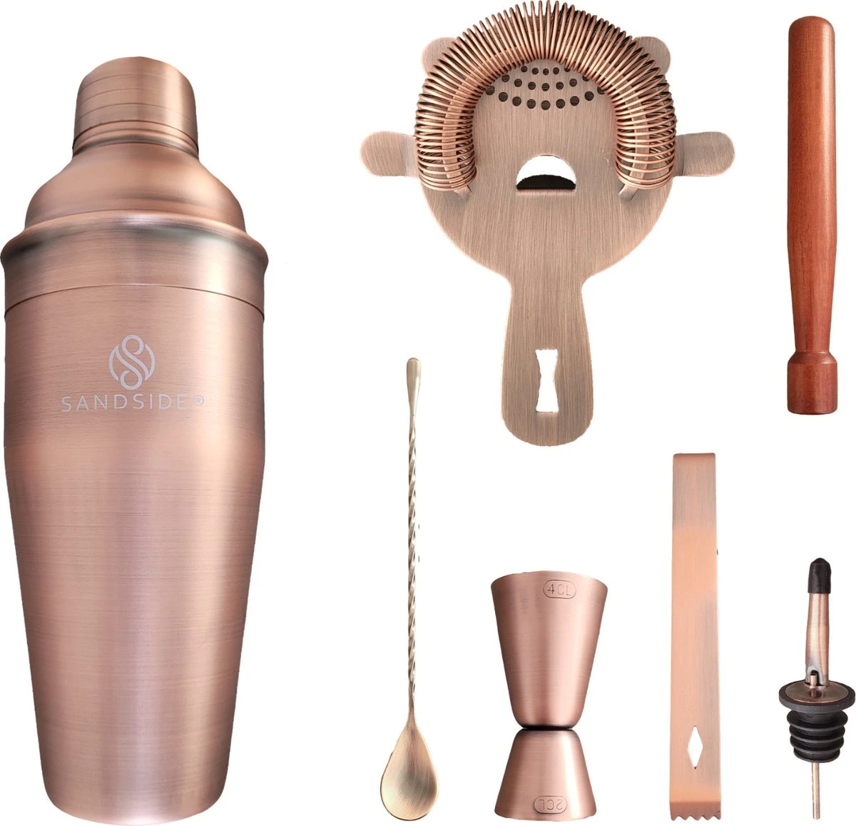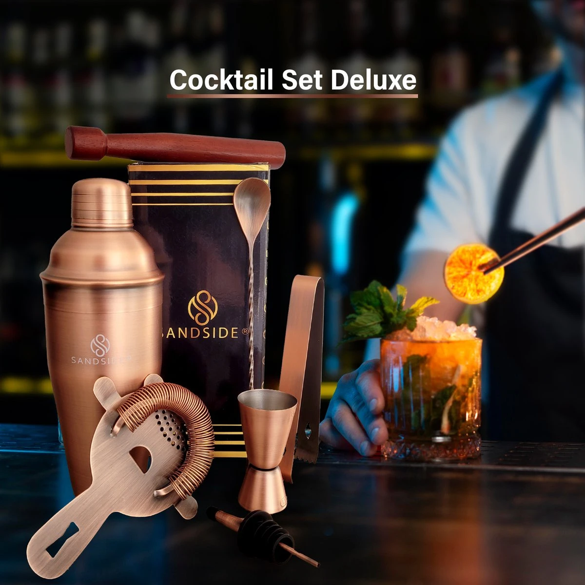 Aimeriez-vous aussi faire les plus délicieux cocktails à la maison ? Que vous soyez débutant ou expert, cet ensemble à cocktail peut vous aider à préparer les cocktails les plus délicieux. Commandez dès maintenant ce service à cocktail 7 pièces dans une luxueuse version en cuivre.