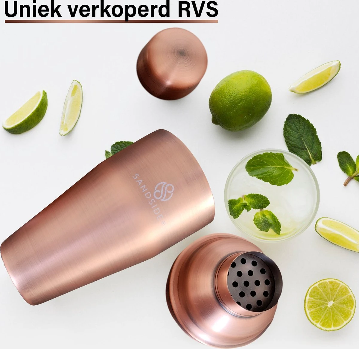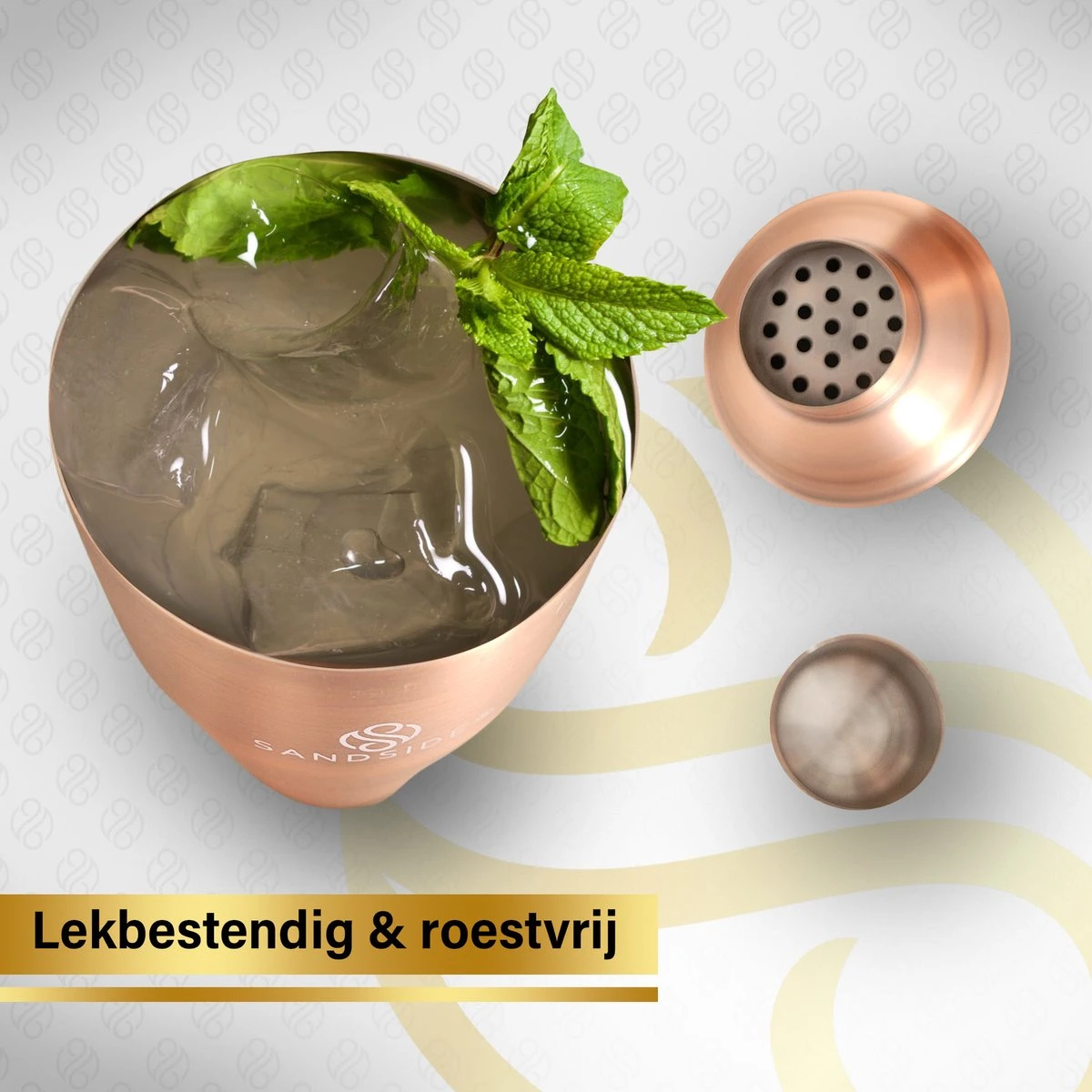 Cet ensemble à cocktail est livré avec un shaker à cocktail pratique de 750 ml dans lequel vous pouvez préparer n’importe quel cocktail en un rien de temps ! Le gobelet doseur de 25 ml et 45 ml du set à cocktail garantit que vous pouvez toujours traiter les bonnes quantités dans les cocktails, afin qu’ils puissent sortir parfaitement à chaque fois ! Envie de faire un Mojito savoureux ? Ensuite, le pilon à cocktail est pratique pour écraser un peu le citron vert et la passoire à cocktail garantit que vous ne pouvez pas boire de morceaux de citron vert en vrac.