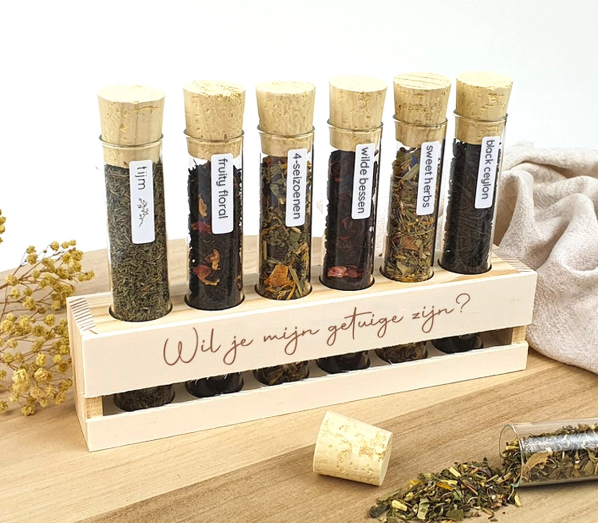 Vous pouvez ensuite facilement remplir les tubes avec du thé ou des herbes que vous voulez. Un cadeau de qualité et surtout durable pour les témoins de votre mariage !