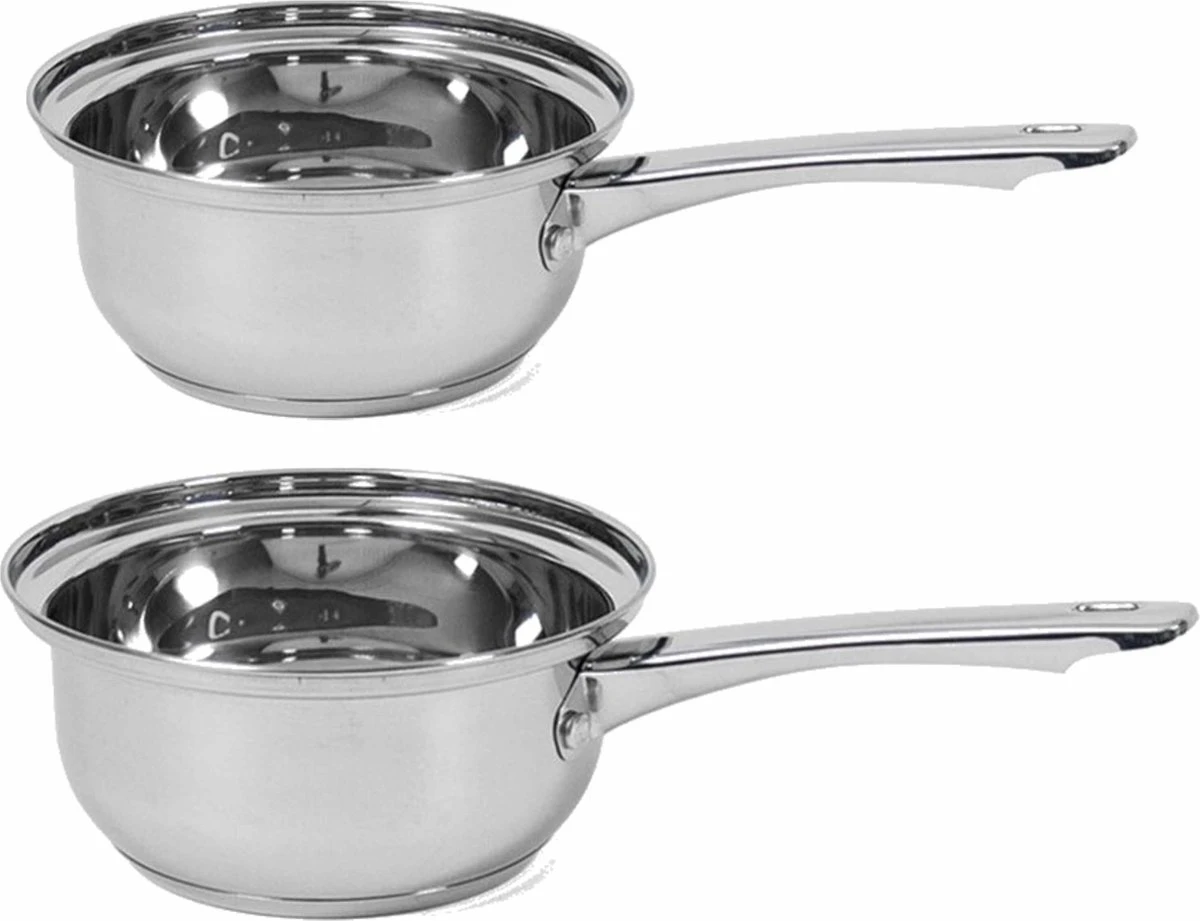 Set de 2x casseroles / casseroles Manhattan 14 cm. Contenu : environ 2 litres et 1,5 litre. Convient pour faire des sauces, des sauces et des œufs bouillis. Convient aux sources de chaleur : gaz, électrique, céramique. compatible avec le lave-vaisselle. Casseroles en inox/ casseroles / casseroles / moules à œufs. composé de 1x Casserole/casserole Manhattan 16 cm, 1x Casserole/casserole Manhattan 14 cm