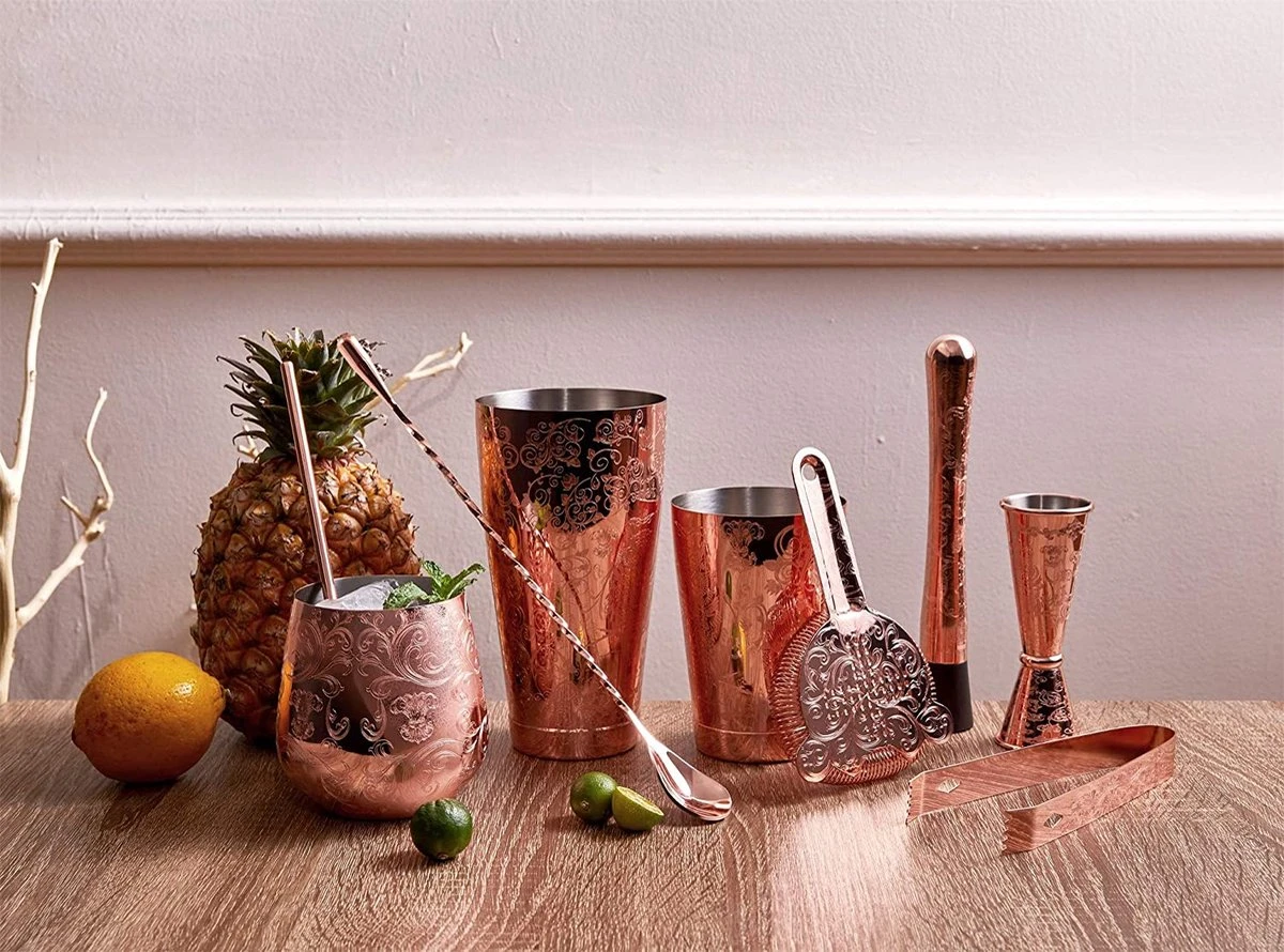 - Design Uniek : le bar avec finition galvanoplastie en cuivre avec motif de gravure vous ramène à l’ Europe médiévale et fait ressortir le héros en vous. Leur look et leur sensation sont tout à fait de premier ordre, qui parlent de grâce et d’élégance à tous points de vue. Cet ensemble de bar est sûr de faire un merveilleux ajout à votre cuisine.
