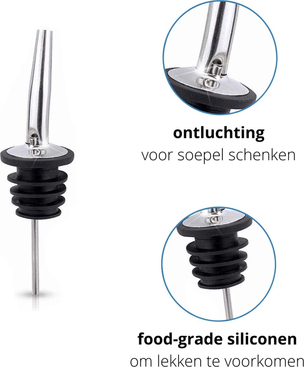 Grâce aux bords en caoutchouc, ces becs s’adaptent à toutes les bouteilles. Ils sont bien sûr idéaux pour les bars et les restaurants, mais sont également utiles à la maison ou lors de fêtes ! Utilisez-les pour faire les cocktails les plus savoureux, ou enrichissez votre plat préféré avec la bonne quantité de vinaigre ou d’huile d’olive !