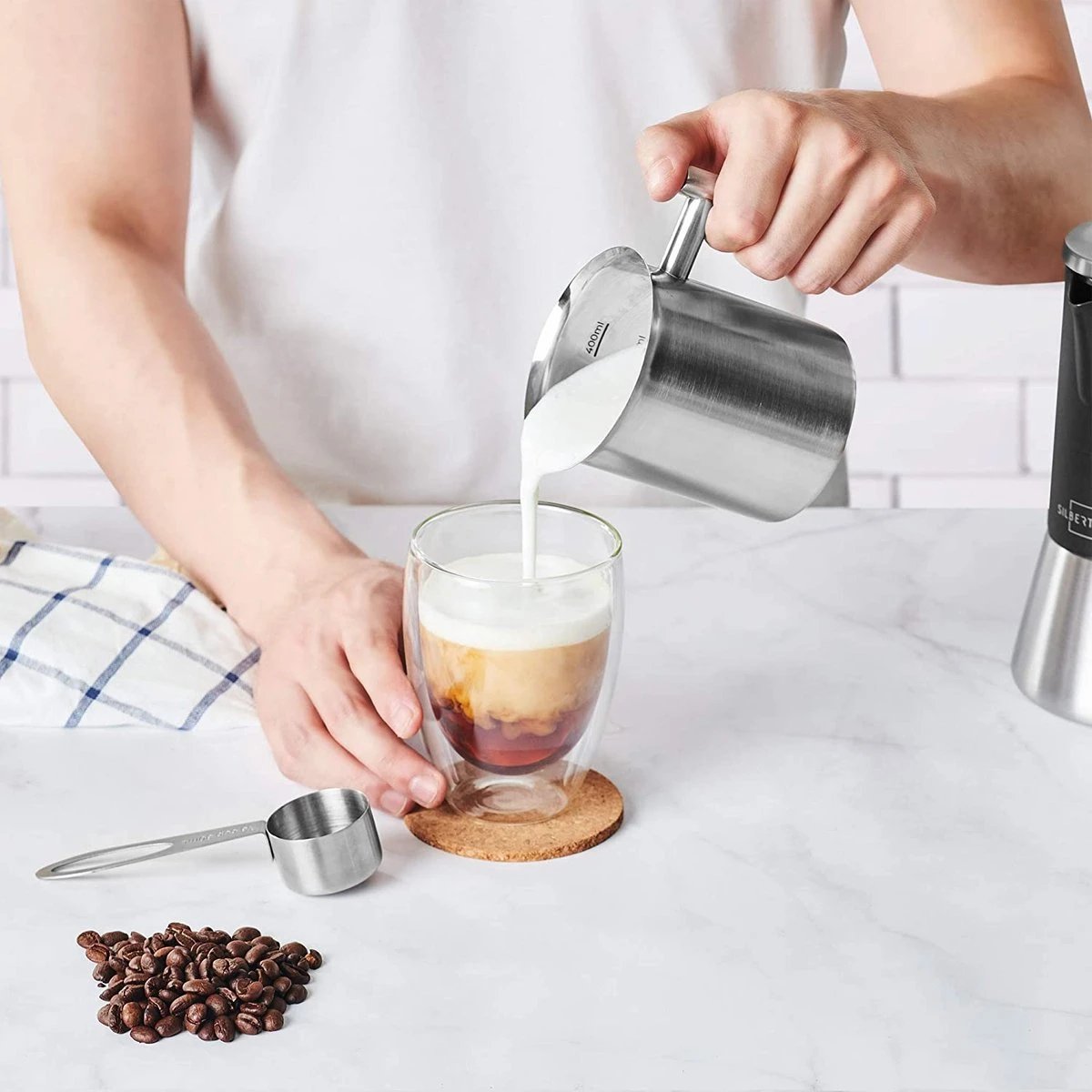 ✅ Versement facile grâce au bec large. De cette façon, aucune mousse de lait n’est perdue.