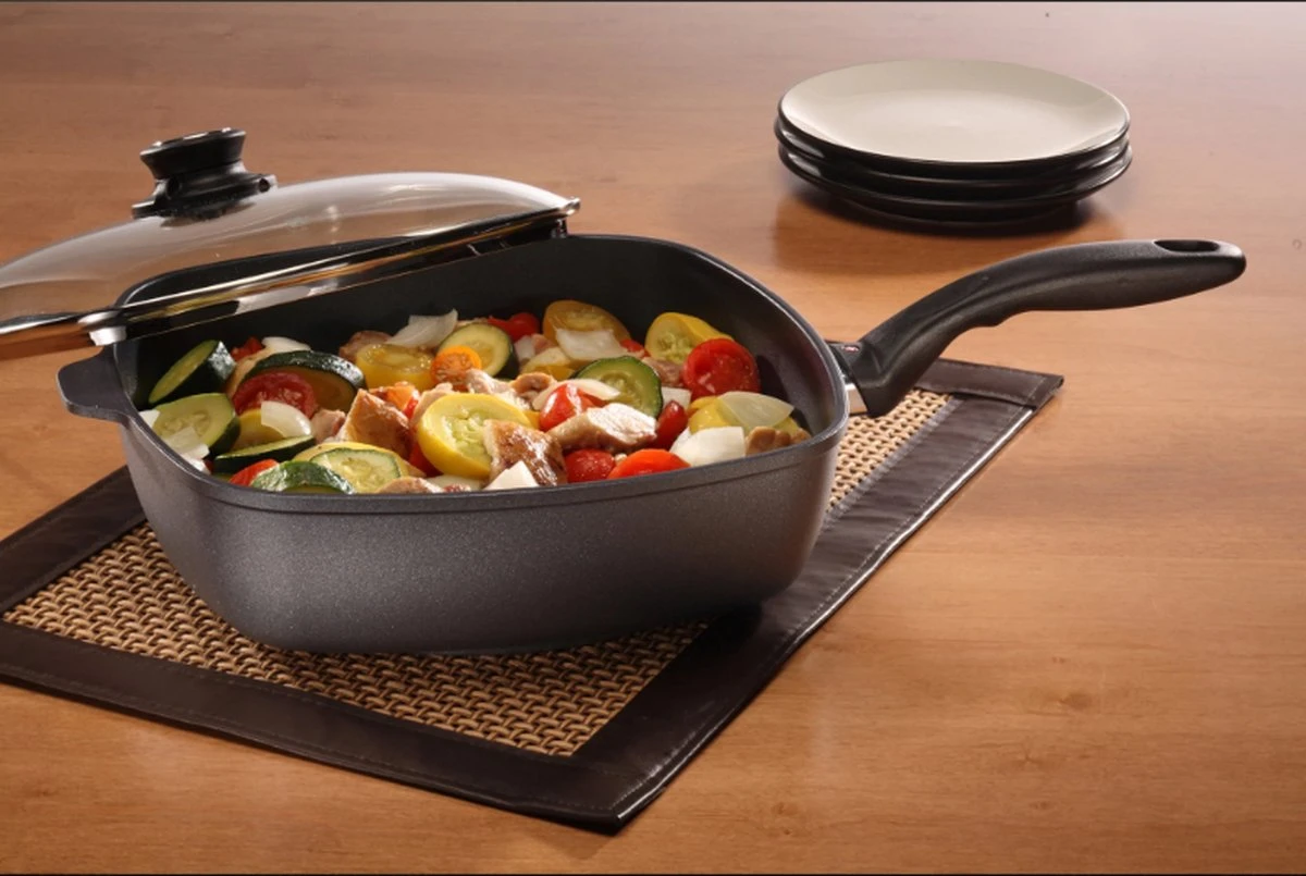 Vous n’aurez jamais à utiliser plus que la chaleur moyenne grâce à la conductivité thermique supérieure. Comprenant un couvercle en verre résistant à la chaleur avec un bouton d’aération réglable pour une meilleure gestion de l’humidité, c’est la sauteuse ultime. Le revêtement antiadhésif Swiss Diamond XD vous fera sourire du début de la préparation de votre repas au nettoyage, tandis que le design unique fera sourire vos amis et votre famille pendant que vous les servez. Cette poêle va au four jusqu’à 500 ° F (260 °C) et peut être facilement déplacée du four, de la cuisinière et de la table. Fabriqué en Suisse.