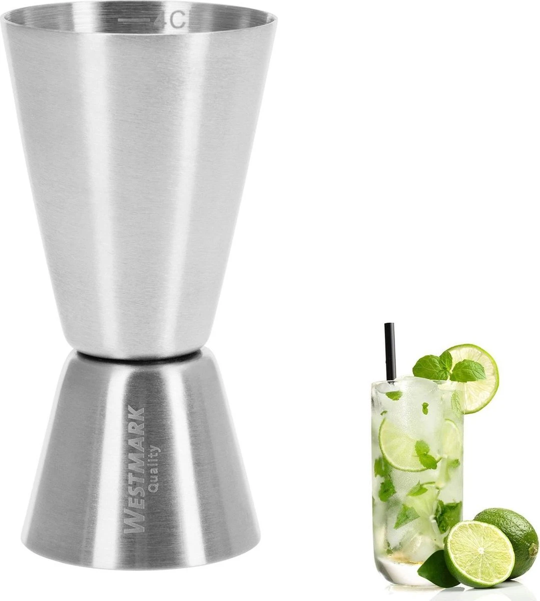• Contenu: 1 x mesure tasse / barre Westmark maar, contenu 2/4 cl, dimensions 4,5 x 4,5 x 8,5 cm (H x L x P), poids 47 grammes, matériau: acier inoxydable, couleur: argent, 62772260