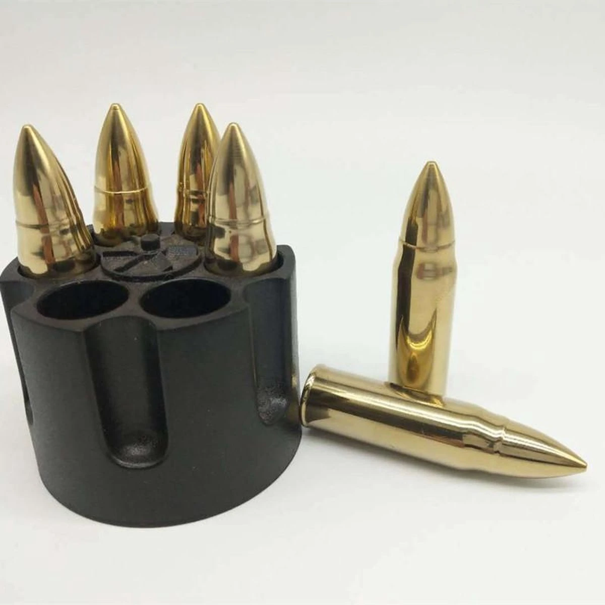 - Les balles de whisky frappantes sont stockées dans une base de congélation premium et originale, sous forme de canon de revolver. Il ressemble exactement à un revolver et ajoute une touche unique à votre boisson, contrairement aux pierres de refroidissement conventionnelles. Les bords arrondis ne rayeront pas votre verre.