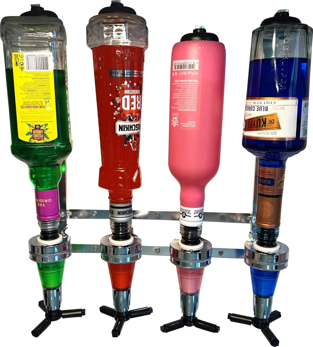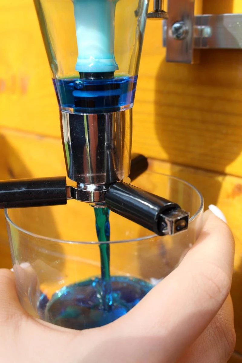 Placez un verre sous l’hélice et poussez vers le haut. Une dose parfaite de 25 ml est versée et se remplit automatiquement pour la dose suivante !