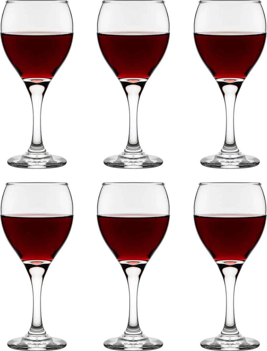 Ce verre à vin de la collection Libbey Teardrop a une contenance de 31,8 cl et le verre pèse 225 grammes. Du coup, on remarque qu’il s’agit d’un verre solide (la plupart des verres à vin pèsent environ 130 grammes). De plus, le verre à vin a un diamètre de 7,2 centimètres et une hauteur de 18,2 centimètres. Ces verres ne se limitent pas non plus au vin. Un jus d’orange ou de l’eau gazeuse est également délicieux dans ce verre Teardrop de Libbey