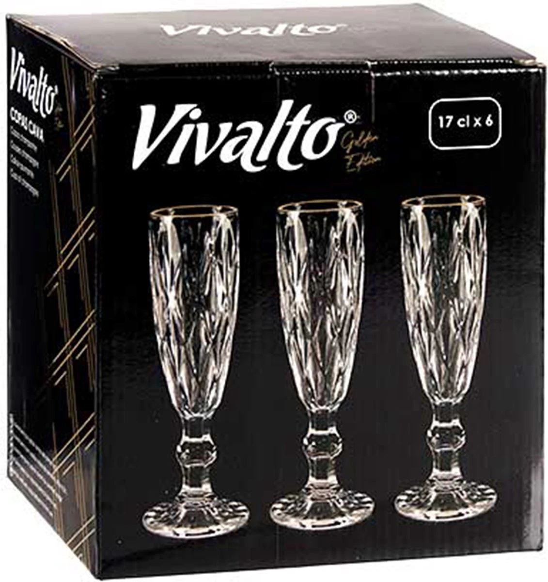 - 1x Coupes à Flûtes à champagne – 6x – aspect cristal – bord doré – 170 ml