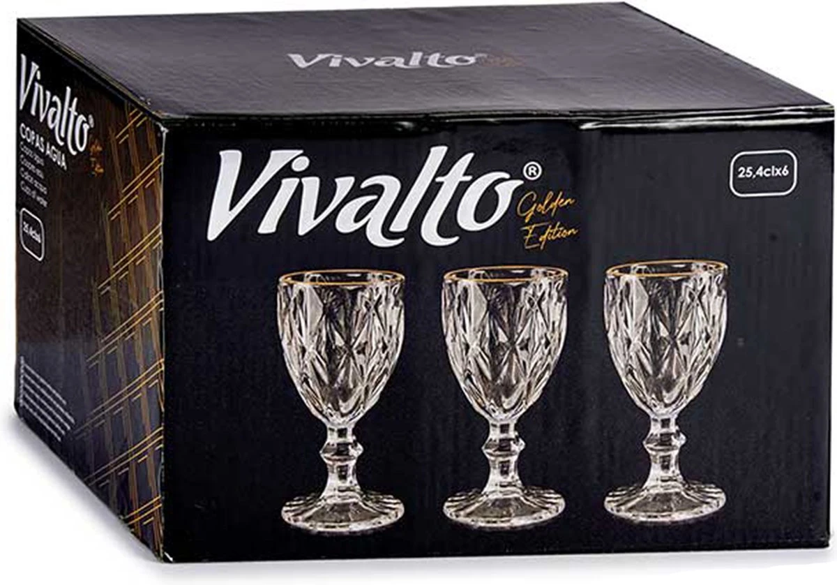 - 1x Verres à vin – 6x – aspect cristal – bord doré – 254 ml