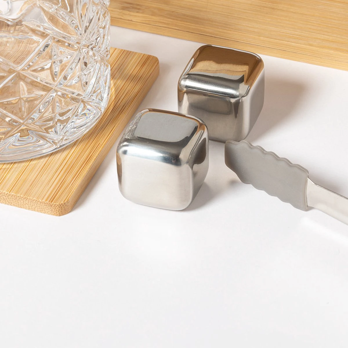 Servez le whisky le plus savoureux avec style grâce à ce magnifique ensemble à whisky ! L’ensemble se compose d’un support en bambou, d’un verre de 350 ml, d’un sous-verre en bambou et de 2 glaçons réutilisables en acier inoxydable avec une pince assortie. Un bon whisky a naturellement besoin d’un bon verre. Avec cet élégant verre de 350 ml, votre whisky aura encore meilleur goût et les 2 glaçons en acier inoxydable maintiendront votre boisson à la température idéale. Les glaçons sont réutilisables. Vous pouvez poser le verre sur la table avec le dessous de verre en bambou et retirer les glaçons de votre boisson avec la pince à glace fournie. Après utilisation, vous pouvez facilement tout ranger dans le support en bambou inclus. Cette norme est également agréable à utiliser pour la décoration de la cuisine. Avec ce set vous buvez votre whisky on the rocks ! Convient à tous les amateurs de whisky.