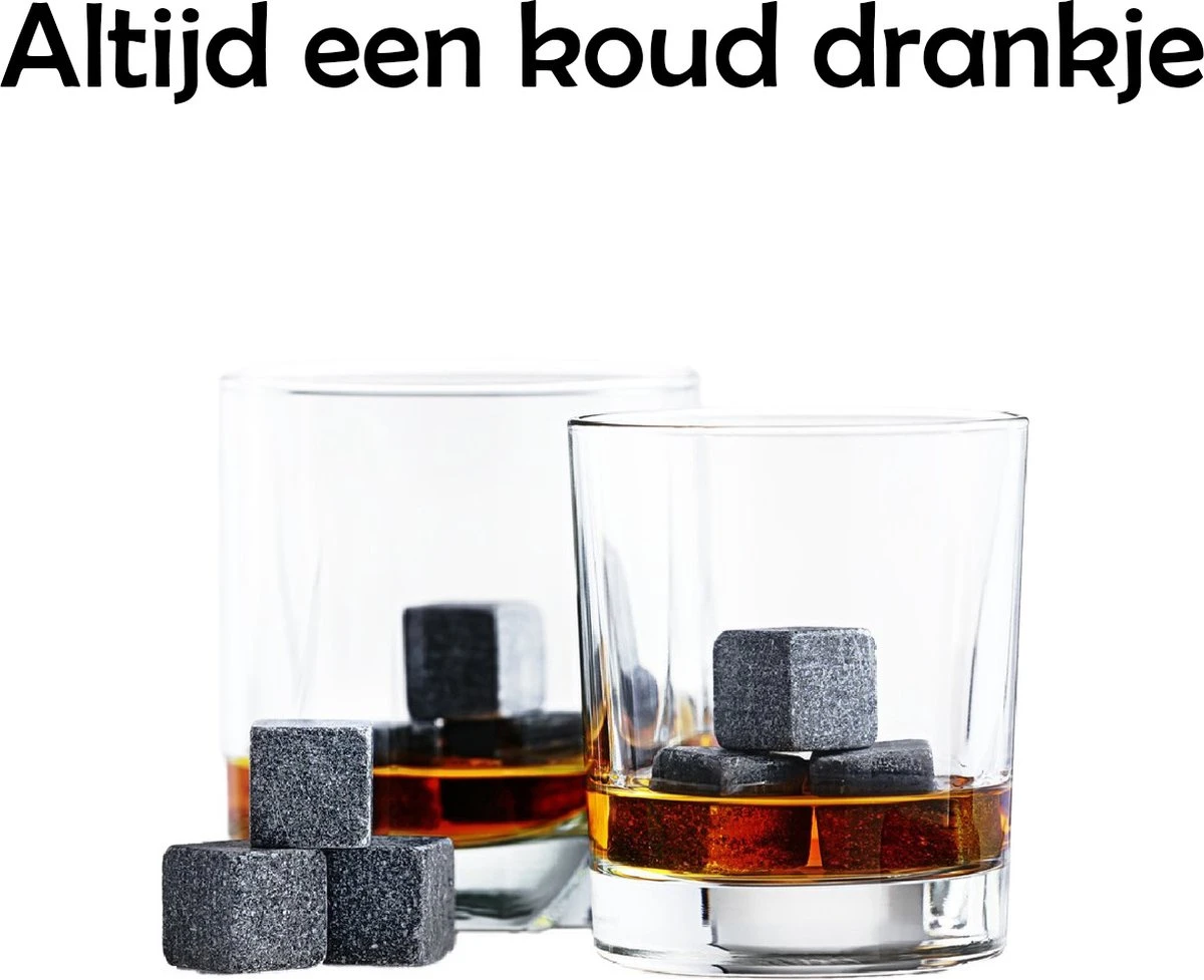 Placer les pierres à whisky au congélateur pendant environ 4 heures. Les pierres à whisky peuvent ensuite être utilisées comme glaçons réutilisables. Ils refroidissent votre délicieux whisky et procurent un effet frais dans le verre. Les pierres à whisky restent froides longtemps. Cela vous permet de profiter de votre whisky tranquillement sans que les pierres à whisky ne refroidissent rapidement ou ne donnent un goût aqueux. Les pierres à whisky sont en pierre naturelle et ne dégagent pas d’arrière-goût étrange. Les pierres à whisky sont également conçues de manière à ce que les pierres à whisky n’endommagent pas votre verre. Lorsque vous n’avez plus besoin des pierres à whisky, elles sont faciles à nettoyer. Vous pouvez nettoyer les pierres à whisky à la main, mais aussi au lave-vaisselle. Les pierres à whisky passent au lave-vaisselle.
